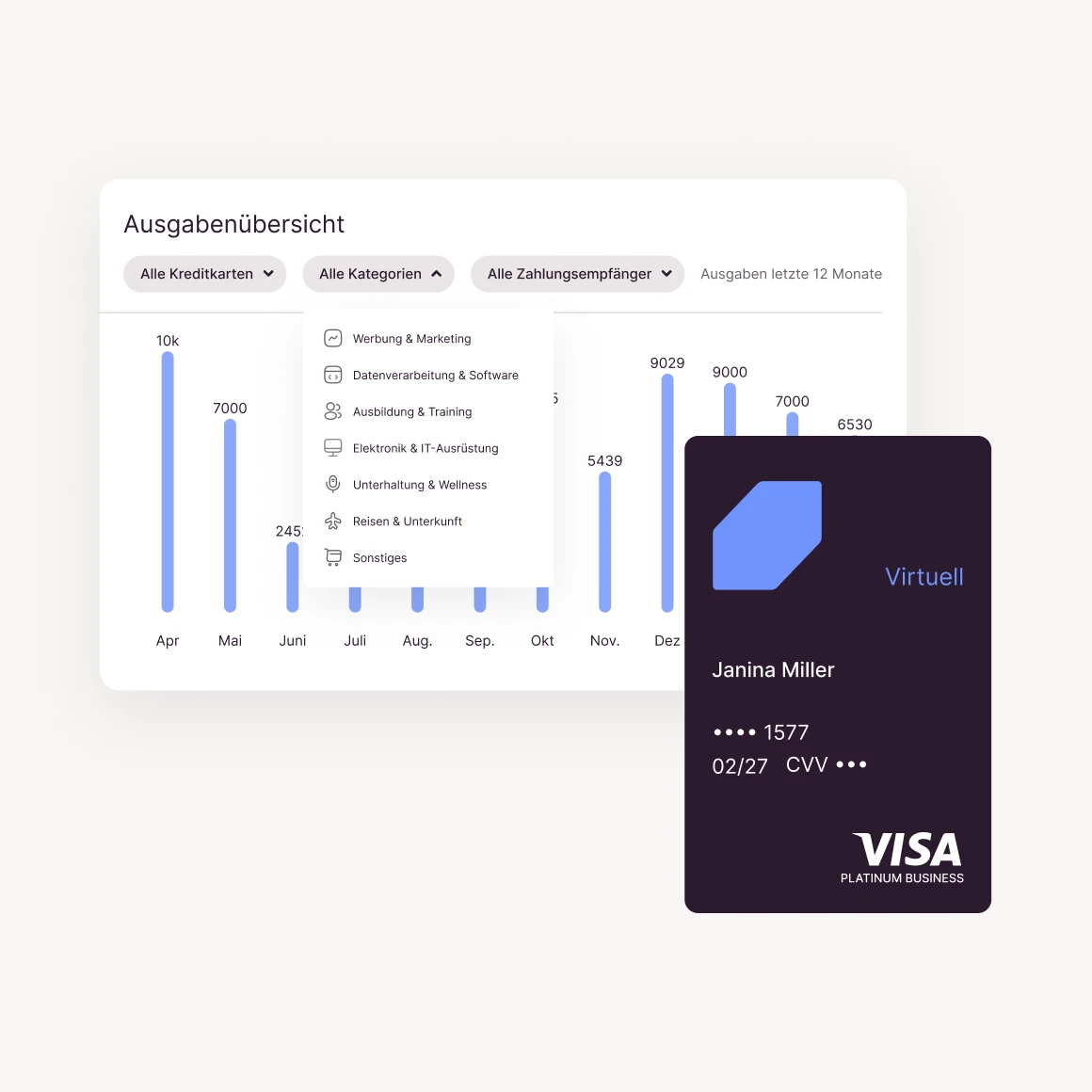 Mit den Candis Visa Firmenkreditkarten verwaltest du deine Ausgaben ab sofort ganz einfach digital – in Echtzeit. Beantrage, bewillige und kündige Kreditkarten mit nur wenigen Klicks und vergib individuelle Limits für einzelne Personen, Abteilungen und Projekte.