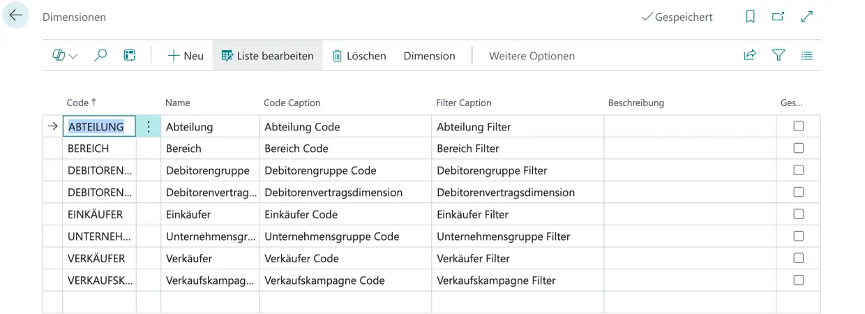 In vielen Unternehmen sind die Dimensionen bereits angelegt – oft sogar direkt als „Kostenstelle“ oder „Kostenträger“ benannt. Falls bei euch noch etwas fehlt, können Dimensionen in Business Central auch nachträglich ergänzt werden.