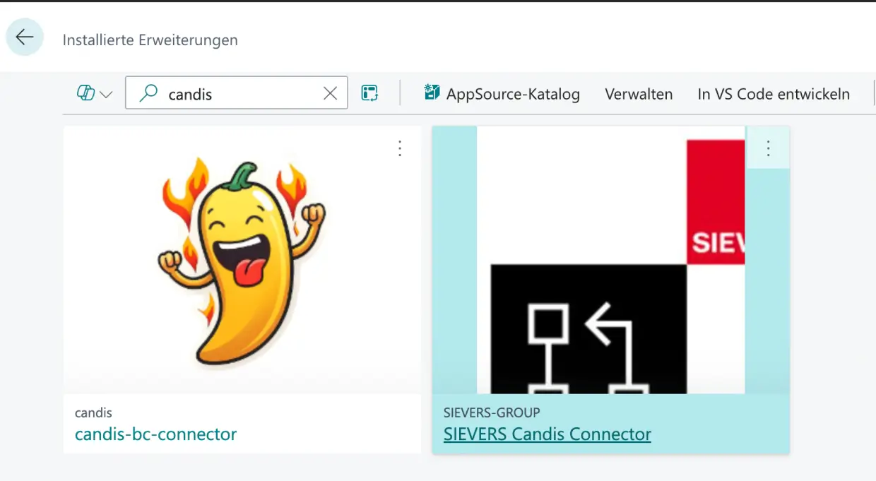 Der SIEVERS Candis Connector wird in Business Central über die Erweiterungsverwaltung installiert. Diese ist mit dem AppSource-Katalog verbunden (Marketplace für Business Central Add-ons).