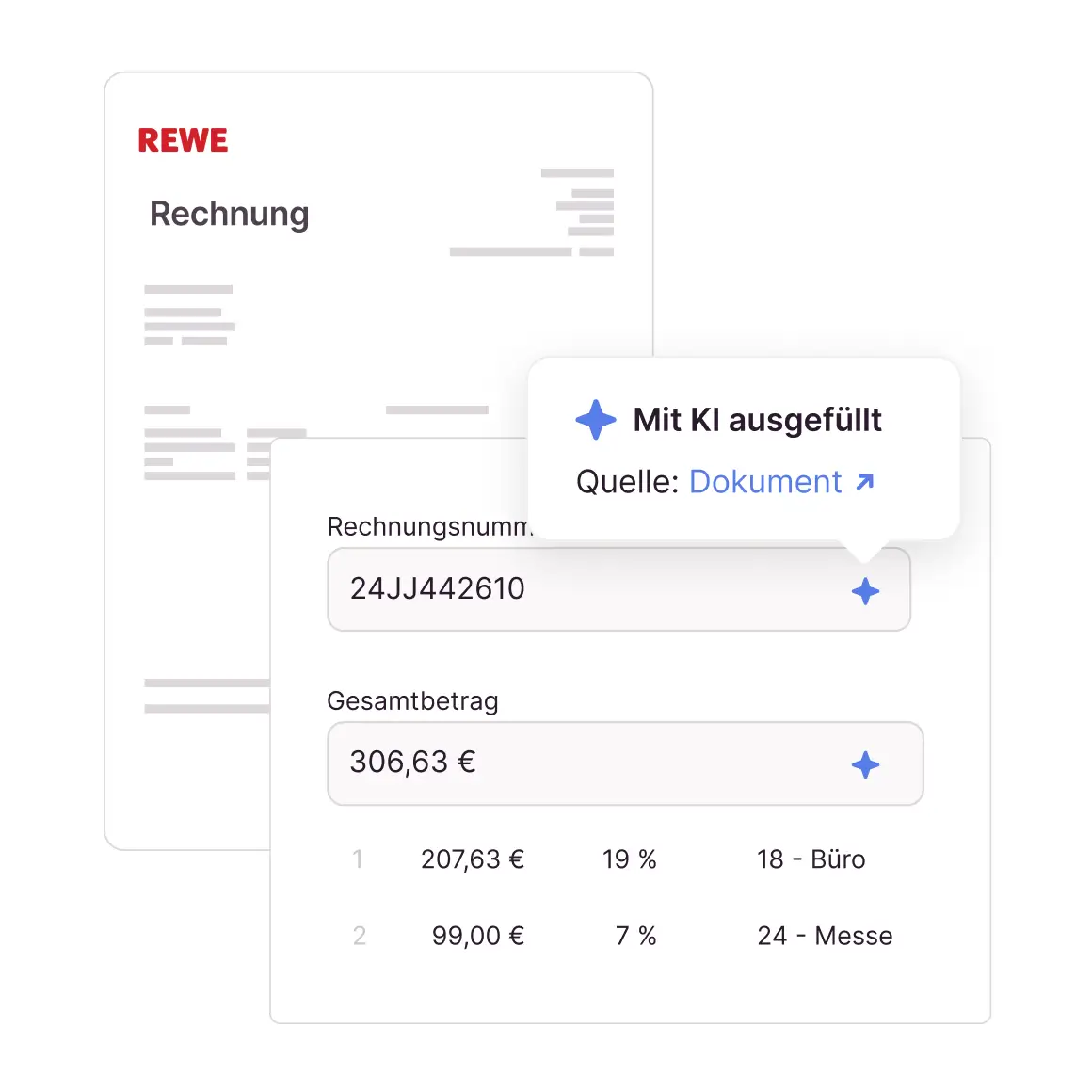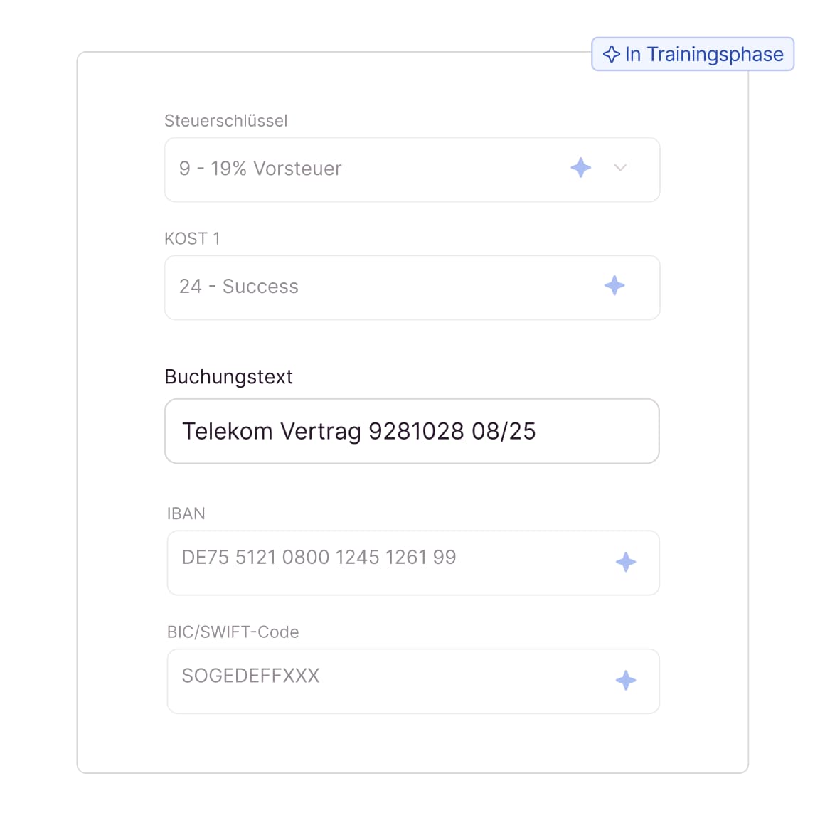 Unsere KI-Funktionen unterstützen dich beim Rechnungsmanagement genau da, wo Prozesse bislang unnötig viel Zeit kosten.