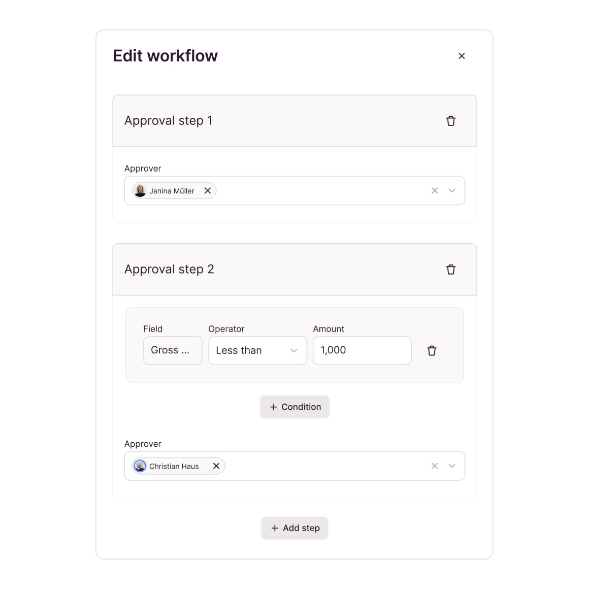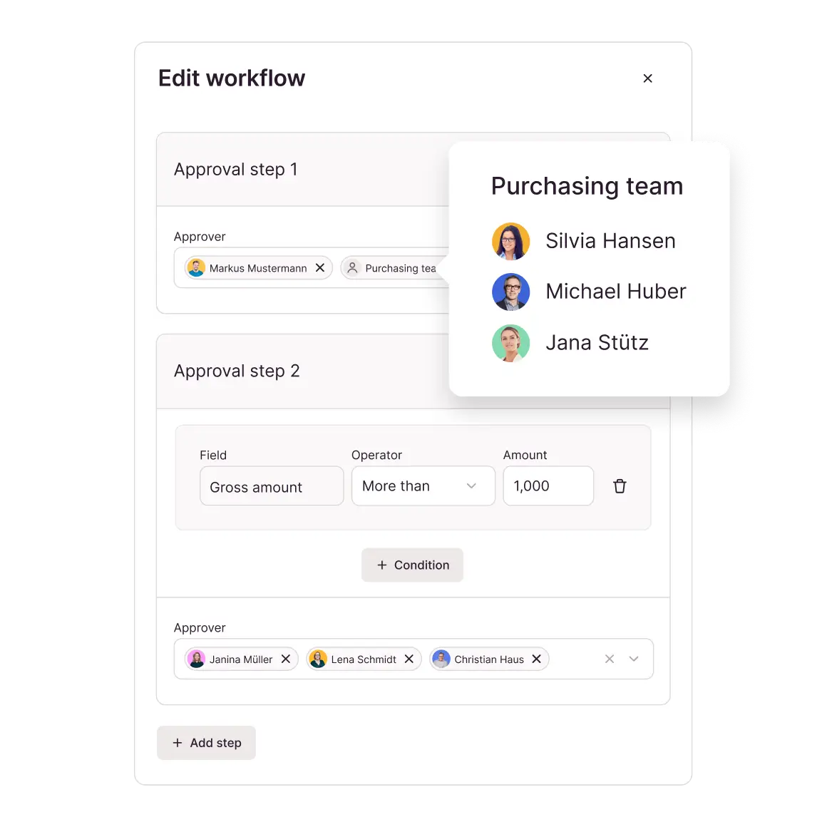 Individual approval levels and amount limits for customized control without micromanagement.