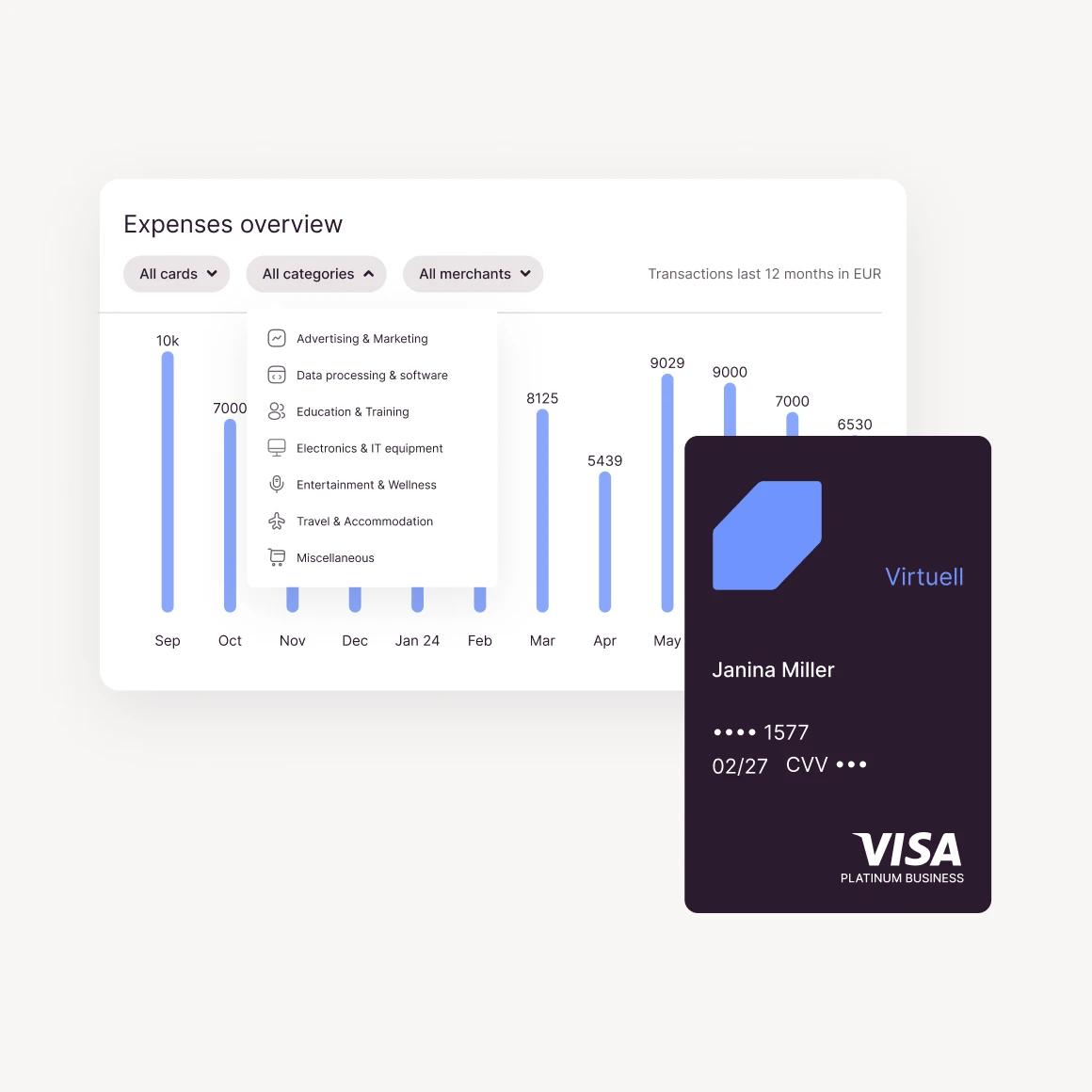 With Candis Visa corporate credit cards, you can now easily manage your expenses digitally – in real time. Apply for, authorise and cancel credit cards with just a few clicks and set individual limits for individuals, departments and projects.