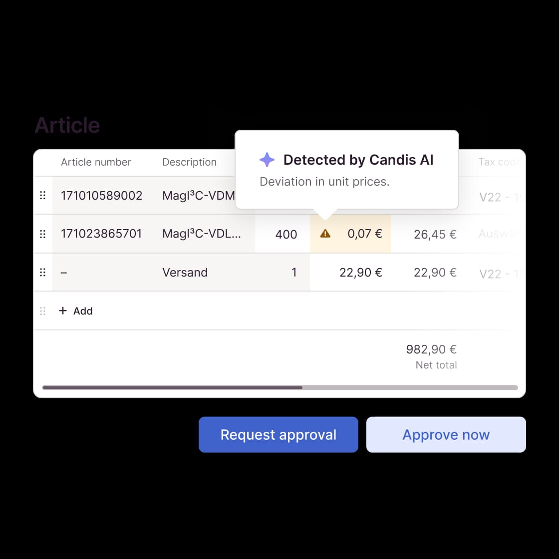 We streamline your invoice management – powered by our artificial intelligence, the Candis AI. It reads documents automatically, classifies them, and automates approval and coding processes.