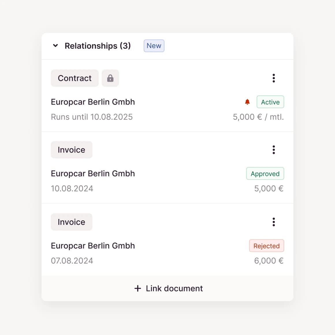 Efficient processes: Add the associated contract directly during approval and check all the details.