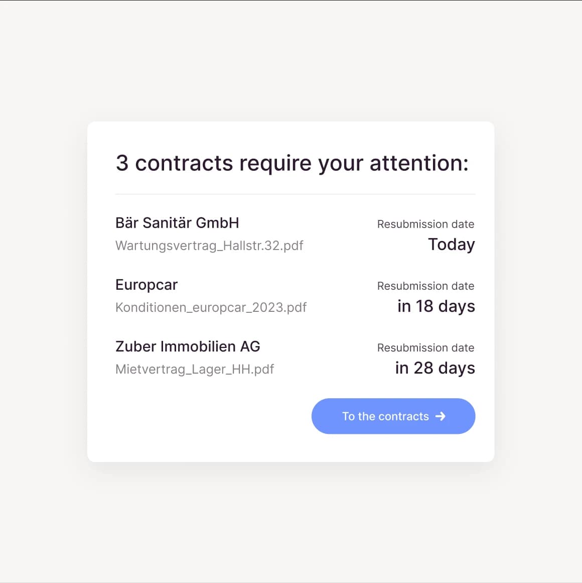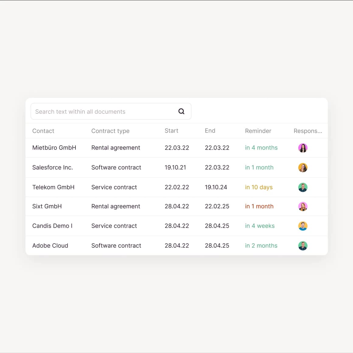 With Candis as your contract management software, you can say goodbye to Excel spreadsheets and folders – and instead welcome a contract overview that is clearly designed and easy to navigate.