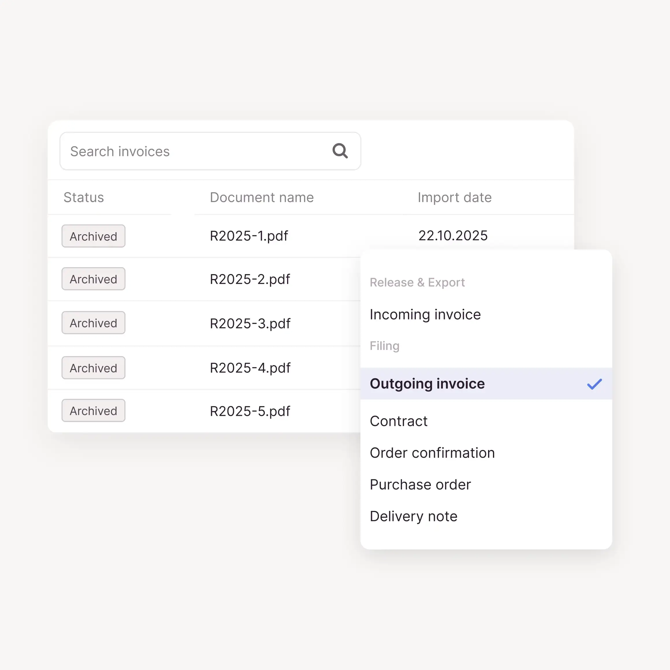 Outgoing invoices are clearly separated from incoming invoices.Comprehensive archive: