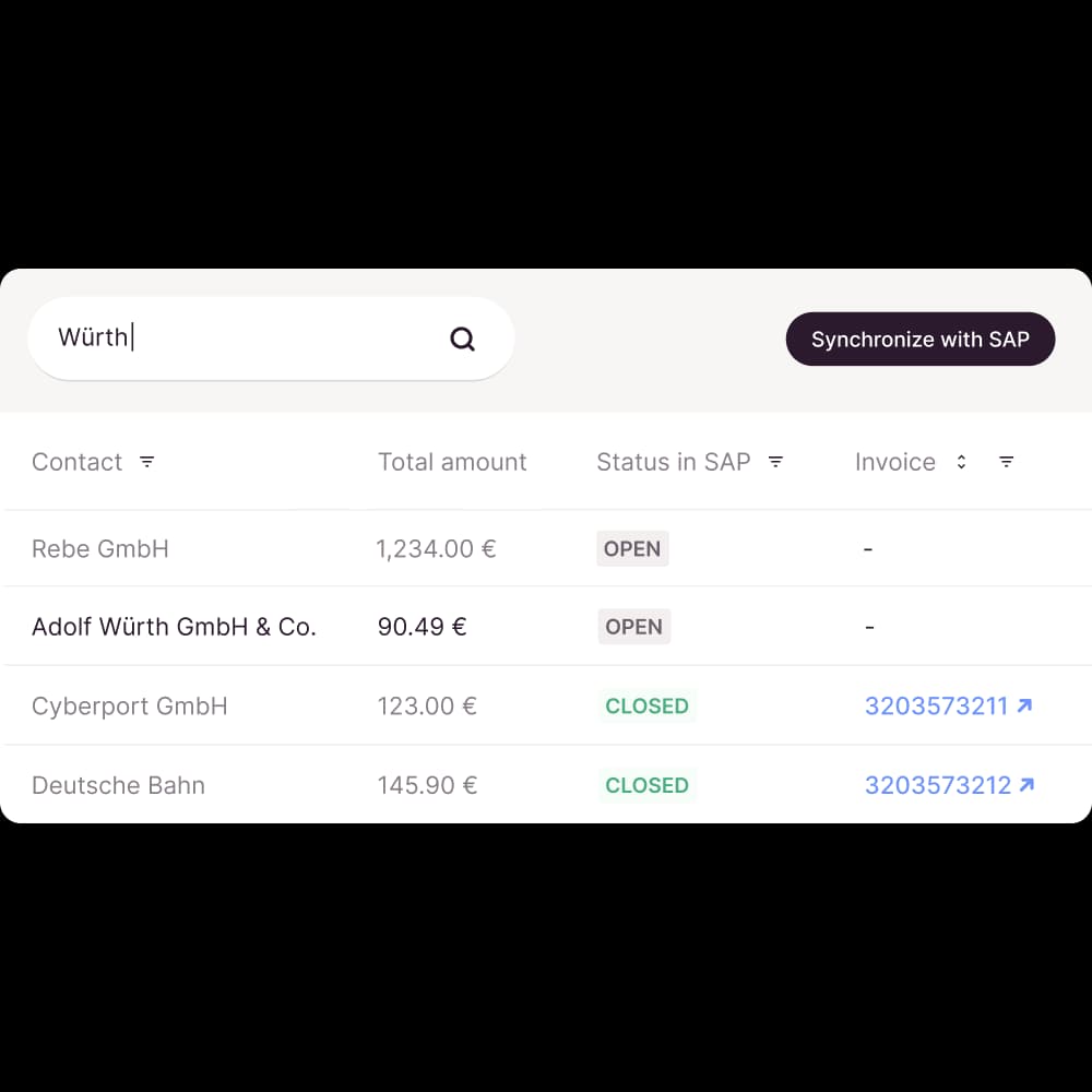 Synchronise master data and purchase orders automatically between SAP Business One and Candis. This saves you having to manually enter data and manually match orders and invoices.