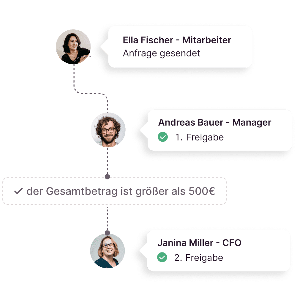 Anpassbare Freigabestufen: Setze spezifische Betragsgrenzen fest – je nach Projekt und Team.